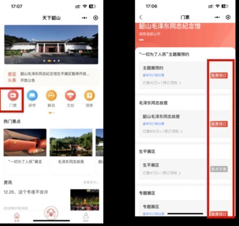 1. "预约方式": - 关注“韶山主席纪念馆”微信公众号。 - 在公众号菜单栏选择“参观预约”。 - 根据提示填写个人信息、预约时间、参观人数等。