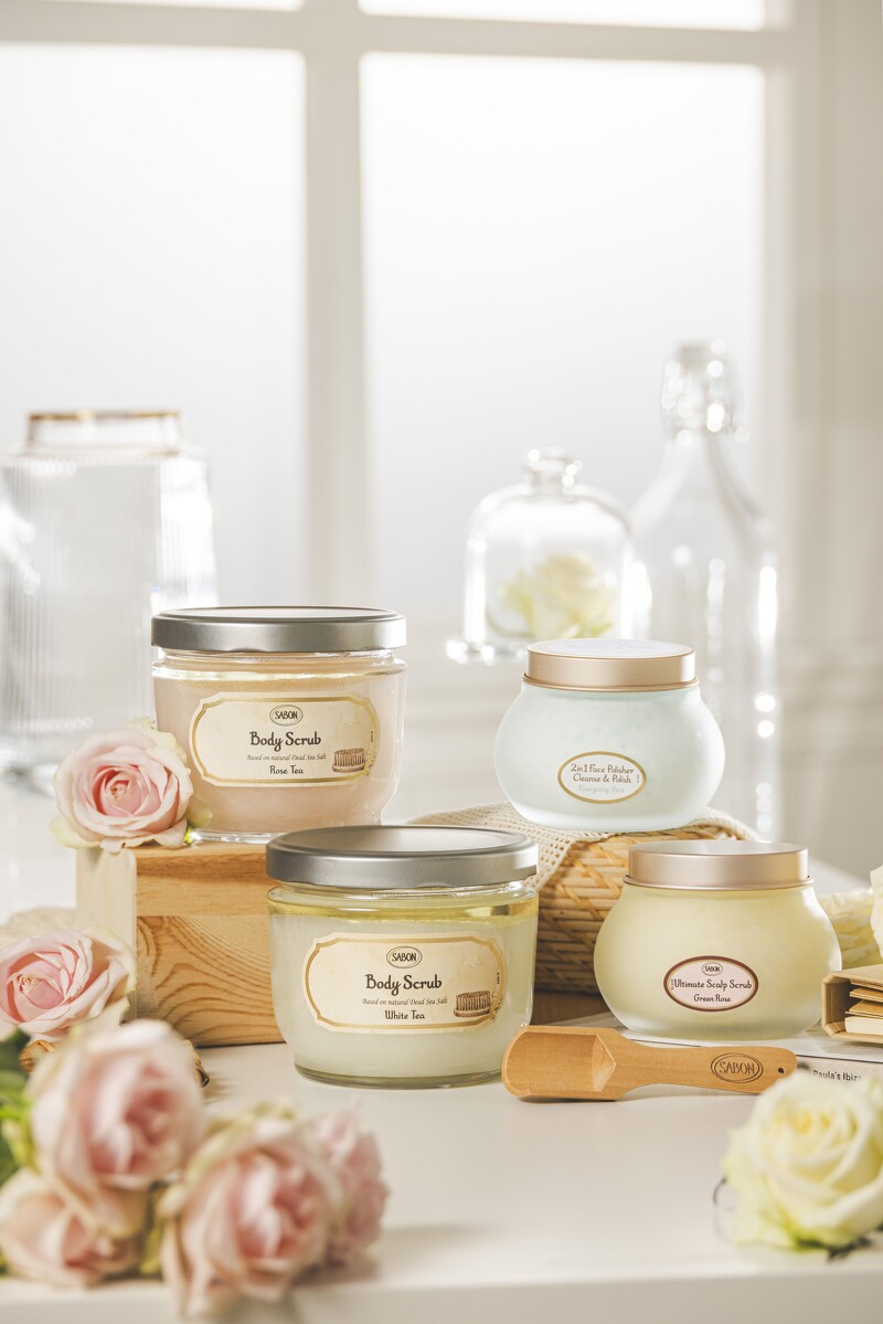 除了身体磨砂膏,二合一纯净脸部磨砂也大受好评,清洁去角质二合一,洗脸同时补水抛光,后续的保养也更好吸收! SABON脸部保养-大马士革玫瑰有机光灿系列也是人气热卖黑马!蕴含玫瑰纯露和死海矿盐,保湿、调理、更新、柔嫩!真的一样都割捨不下!週年庆精选2样就能享有89折优惠,M编最推活肤水,一喷就有满满玫瑰疗癒香气兼顾补水保湿,后续可依肤质或喜欢的质地挑选,搭精华油、水凝冻或润泽霜,2步骤就能养出散发透亮光采的玫瑰花瓣美肌!(不含三效死海泥面膜50ml、脸部磨砂膏60ml、不重複品项)。